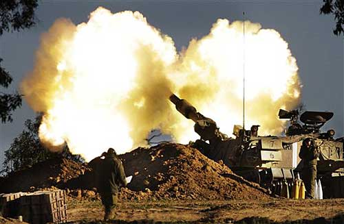 第八日 以色列军队3日下午开始对加沙地带发动炮击。这是2008年12月27日以军开始空袭加沙以来首次进行炮击。哈马斯高级指挥官阿尔•贾迈勒在袭击中丧生,他是第三位在以军袭击中丧命的哈马斯高级指挥官。第二位是哈马斯下属武装派别高级军事指挥官阿布•扎卡里亚•贾迈勒,他于2日晚在空袭中受伤,3日早因伤势严重死亡。当晚,以色列发动地面进攻,战争全面升级。死亡人数上升至450人,受伤者达2300人。【详细】