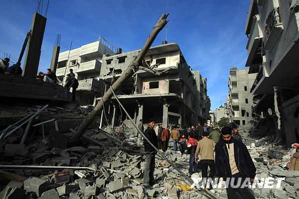 第二十天 以军15日凌晨攻进加沙城南部,随后向城中心推进。以军F16战机当晚炸毁加沙城北部一栋三层住宅楼,炸死包括哈马斯当局内政部长在内的三名高级领导人。另外,联合国近东巴勒斯坦难民救济和工程处办公地点当天遭到以军炮击,加沙城南部的巴勒斯坦红新月会办公地点也遭袭。目前以军行动已造成至少1095人死亡,超过5000人受伤。哈马斯称如果以色列在1周内撤军并立即重开加沙口岸,他们愿意实现一年甚至更长的停火。