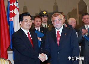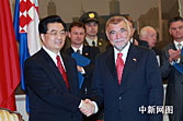 图:胡锦涛与克罗地亚总统梅西奇举行会谈