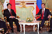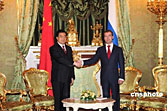 中国国家主席胡锦涛与俄总统梅德韦杰夫会谈