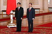 俄罗斯总统梅德韦杰夫举行仪式欢迎胡锦涛到访