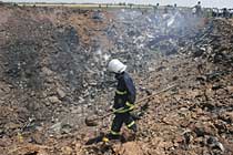 图:消防人员正在消理现场
