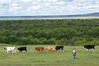 漫步奶牛群边的“牛仔”