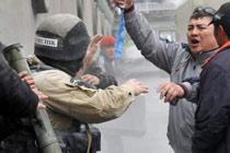 吉尔吉斯斯坦大规模骚乱 示威者与警方冲突