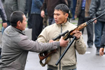 吉尔吉斯斯坦大规模骚乱 示威者手持枪支