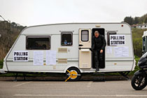 • 图:英国选民在大篷车内投票