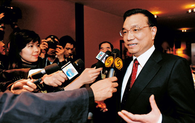 2010年1月28日,李克强在瑞士达沃斯与记者见面。新华社发