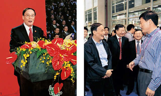 2010年10月31日,王岐山在上海世博会闭幕式上致辞。新华社发(上图右1)