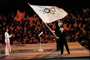 2004年8月30日,王岐山在雅典奥运会闭幕式上接过奥运会会旗。新华社发