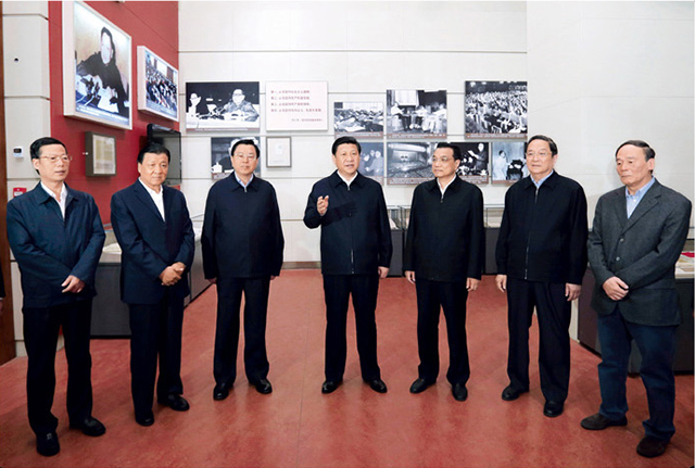 2012年11月29日,中共中央总书记、中央军委主席习近平和中央政治局常委李克强、张德江、俞正声、刘云山、王岐山、张高丽等来到国家博物馆,参观《复兴之路》展览。新华社记者兰红光摄