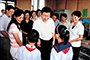 2007年9月,时任上海市委书记的习近平在上海闵行区启音学校与听障学生亲切交谈。新华社发