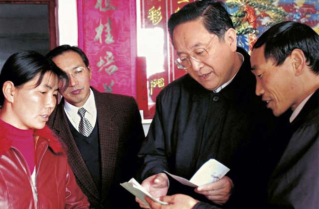 2002年1月11日,俞正声在湖北省嘉鱼县进行农村调研,了解农民负担情况。新华社记者杜华举摄