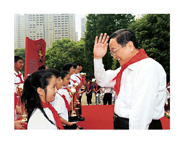 2011年5月31日,俞正声为上海市"十佳少先队员"颁奖。新华社发