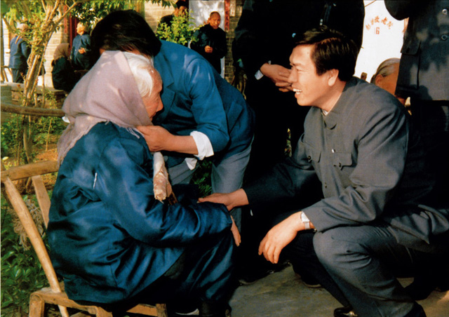 张德江在民政部工作期间,到河南农村敬老院调研时看望百岁老人。