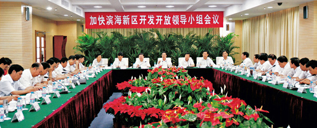 2007年7月3日,张高丽主持召开天津市加快滨海新区开发开放领导小组第一次会议,研究部署有关工作。新华社发(宋子明摄)