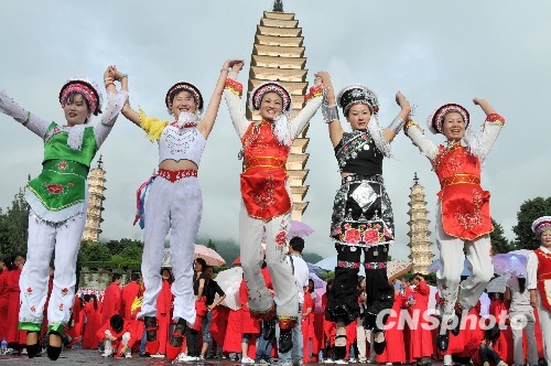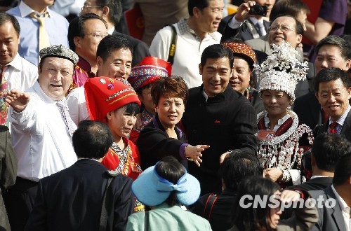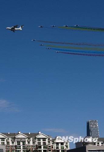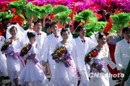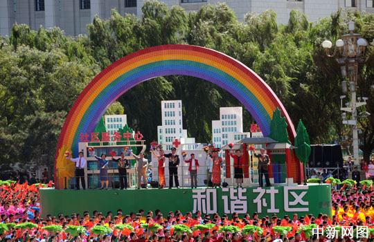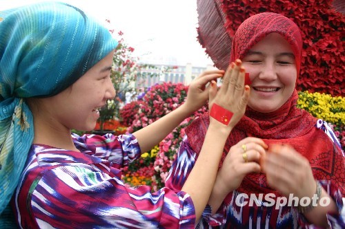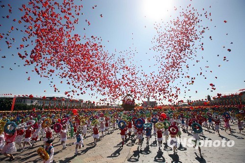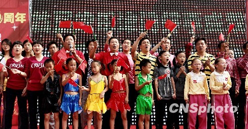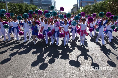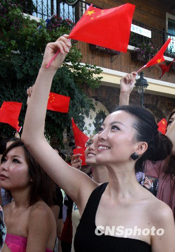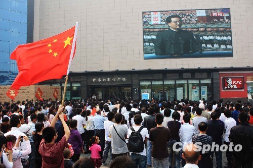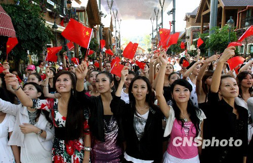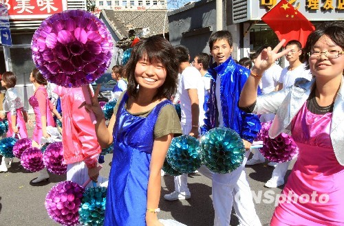 图:黑龙江大学生挥舞国旗为祖国欢呼