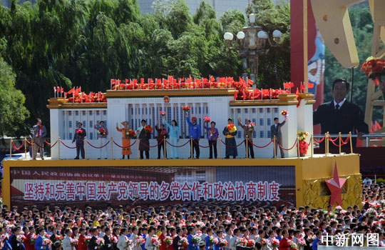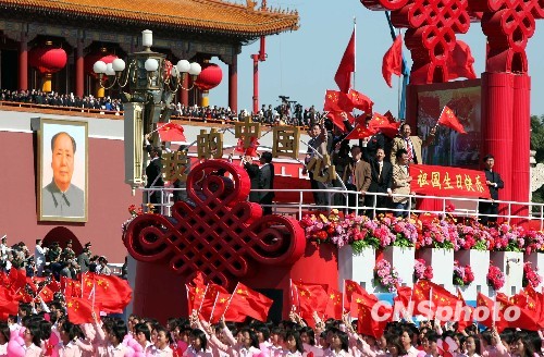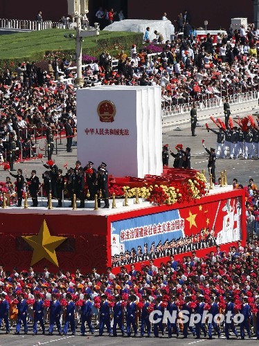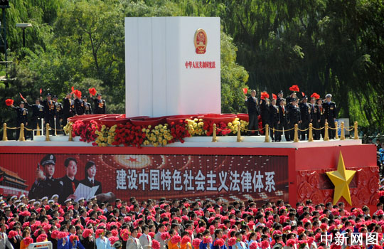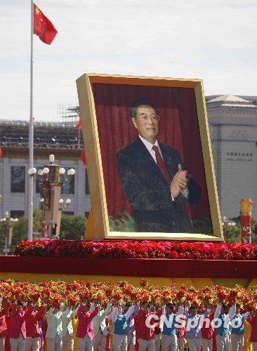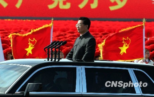 国庆阅兵:胡锦涛乘红旗车阅兵