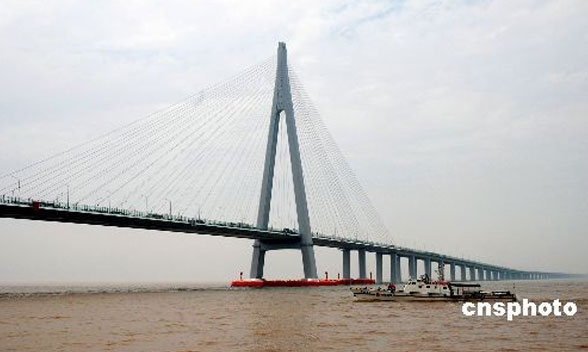 杭州湾跨海大桥(Hangzhou Bay Bridge)是一座横跨中国杭州湾海域的跨海大桥,2008年5月1日试运营通车。它北起浙江嘉兴海盐郑家埭,南至宁波慈溪水路湾,全长36公里,是世界上最长的跨海大桥,比连接巴林与沙特的法赫德国王大桥还长11公里,成为继美国的庞恰特雷恩湖桥后世界第二长的桥梁。杭州湾跨海大桥是国道主干线-同三线跨越杭州湾的便捷通道。大桥北起嘉兴市海盐郑家埭,跨越宽阔的杭州湾海域后止于宁波市慈溪水路湾,全长36km。大桥建成后将缩短宁波至上海间的陆路距离 120余公里,从而也大大缓解已经拥挤不堪沪杭甬高速公路的压力,形成以上海为中心的江浙沪两小时交通圈。