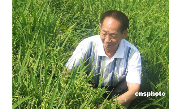 袁隆平 (1930.9.7 -),汉族,江西省九江市德安县人。我国杂交水稻研究创始人,被誉为“杂交水稻之父”、“当今中国最著名的科学家”、“当代神农氏”、“米神”等。 1953年,袁隆平毕业于西南农学院(2005年并入西南大学)。1964年开始研究杂交水稻,1973年实现三系配套,1974年育成第一个杂交水稻强优组合南优2号,1975年研制成功杂交水稻制种技术,从而为大面积推广杂交水稻奠定了基础。1980-1981年,袁隆平赴美任国际水稻研究所技术指导。1982年任全国杂交水稻专家顾问组副组长。1985年提出杂交水稻育种的战略设想,为杂交水稻的进一步发展指明了方向。1987年任863计划两系杂交水稻专题的责任专家。1991年受聘联合国粮农组织国际首席顾问。1995年被选为中国工程院院士。1995年研制成功两系杂交水稻,1997年提出超级杂交稻育种技术路线,2000年实现了农业部制定的中国超级稻育种的第一期目标,2004年提前一年实现了超级稻第二期目标。