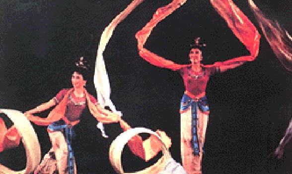 舞蹈《飞天》不仅是当代中国第一部取材于敦煌壁画的舞蹈作品,同时也是继承戏曲中的长绸舞并加以发展、创新,使之成为独立的纯舞蹈艺术的第一部成功之作。从1954年首演至今,经久不衰。