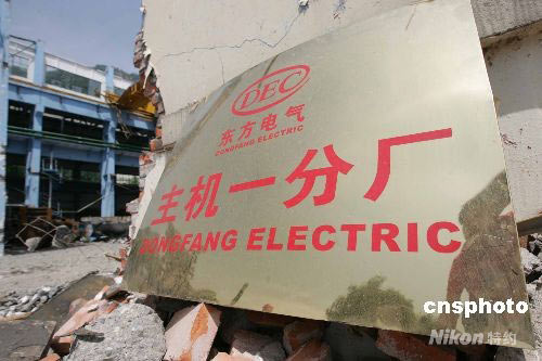 图:东方汽轮机厂清理灾后厂房准备重建(5)