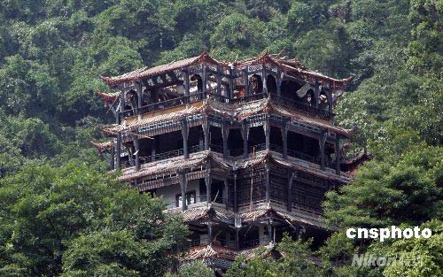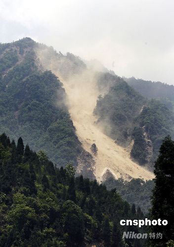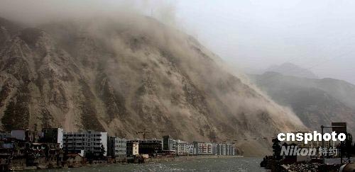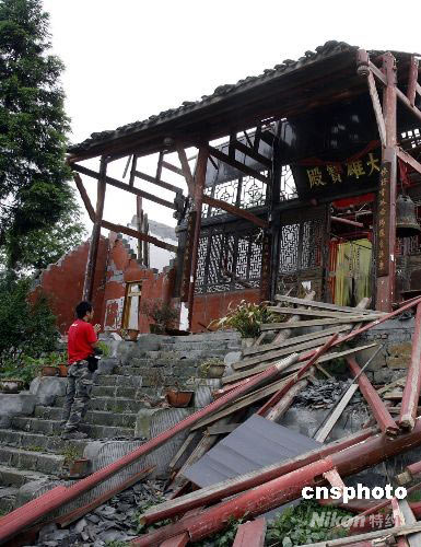 图:四川都江堰鱼嘴分水堤震后出现裂缝