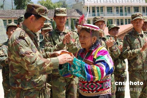 图:温家宝唐家山堰塞湖抢险指挥部看望专家组成员