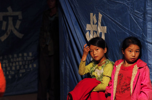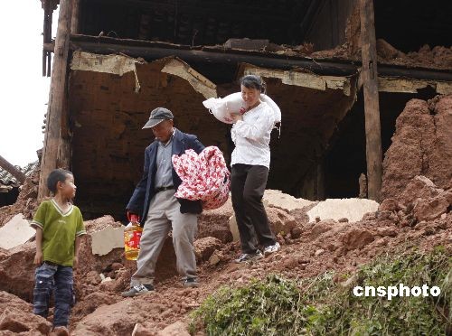 图:云南省长秦光荣看望姚安地震重灾区民众