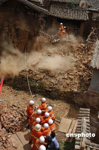 降雨导致山体滑坡 通往云南地震灾区道路被阻