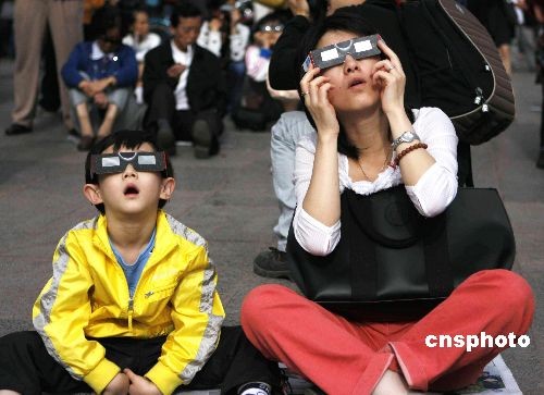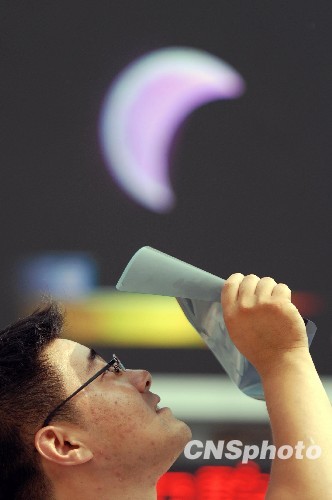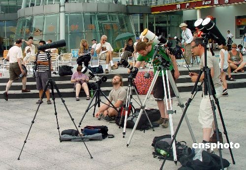 中国各地群众观看日食奇观:中外爱好者北京齐待日偏食