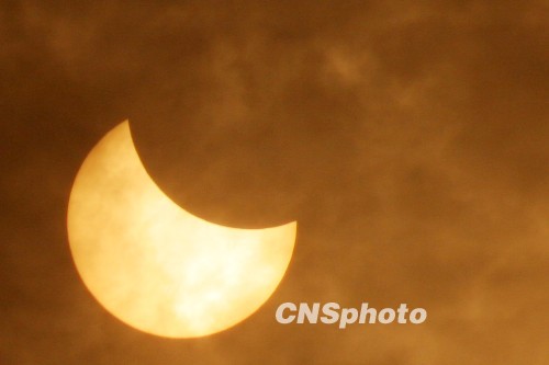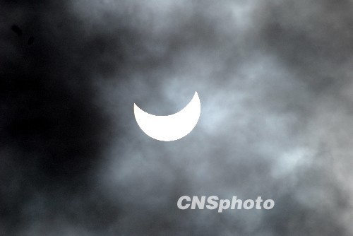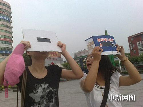 图:“大日食”如约光临重庆 当地市民翘首观看(2)