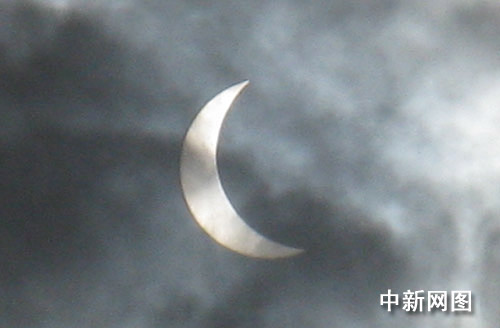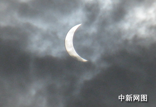 中国各地观测日食奇观:江苏赣榆透过薄云看日食