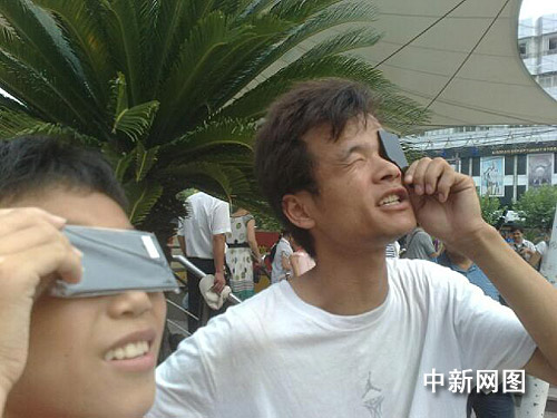 湖北黄石数十万市民争看日全食奇观(组图)(2)