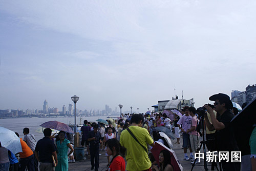 浙江嘉兴数万游客冒雨观日全食 海外游客称不虚此行