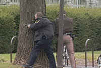 枪击案发生后校园内的警察