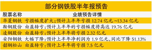 钢铁股半年报业绩不理想