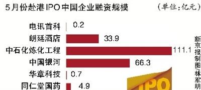 5月中企赴港IPO强势反弹,投中集团昨日发布数据显示,5月共有6家中国企业在香港资本市场完成IPO,融资217.1亿元。