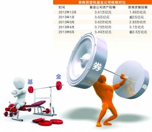 来自中国证券业协会最新统计显示,2013年6月底券商资管规模超过3.5万亿元,而上周基金业协会公布的基金公司公募和非公募资产合计为3.49万亿元,券商资管在今年6月实现了对基金公司总规模的超越。