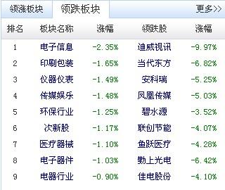 从早盘来看,电子支付、手机游戏以及教育传媒等新兴产业个股出现大面积的回调,直接拖累创业板指数出现大跌,短期来看,类似题材个股的风险仍有待释放。从涨幅榜来看,湘鄂情进军环保行业,而连续两个交易日涨停,新民科技、中京电子、华策影视、康耐特、天坛生物、金飞达均封于涨停板。