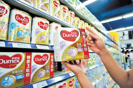 长沙部分超市已经开始排查涉事产品。图为晚报大道上的精彩生活超市在售正常批次多美滋奶粉。邹麟 摄