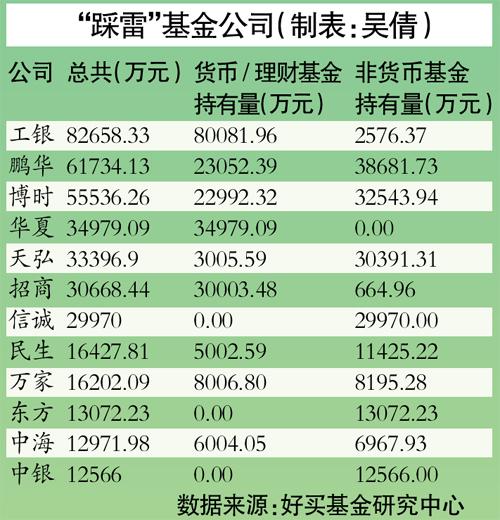 信用风险高发,基金公司频频“踩雷”。好买基金研究中心统计显示,截至二季度,共有12家基金公司持有约40亿元规模降级信用债券。其中,工银瑞信基金公司总共持有8.27亿元此次被降级的债券,鹏华基金公司位居次席达6.17亿元,博时第三位,达到5.55亿元。