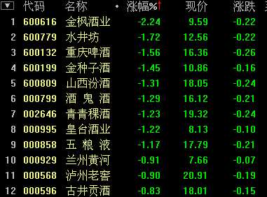 刚刚送走了差强人意的中报业绩,白酒业又遇上惨淡的“双节”销售行情。今天早盘白酒股纷纷走低,拖累酿酒板块。其中金枫酒业领跌2.24%,水井坊、金种子酒、山西汾酒、酒鬼酒、五粮液等纷纷下挫。