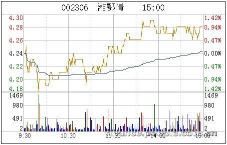 湘鄂情昨日收涨0.94%,现报4.28元。(杨曦)