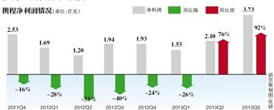 在2011年第四季度到今年第一季度,携程净利润连续六个季度大幅缩水。曾因留学离开携程六年的创始人梁建章在今年2月份回归后,携程的风格从防守转为进攻,在移动客户端、OTA价格战等领域主动出击,这也为携程的业绩带来转变。今年第二、三季度净利润的同比增长幅度分别为76%和92%。