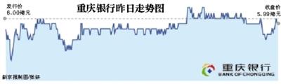 周三重庆银行以6港元价格开盘后,多数时间股价低于这一水平,最终收报5.99港元。