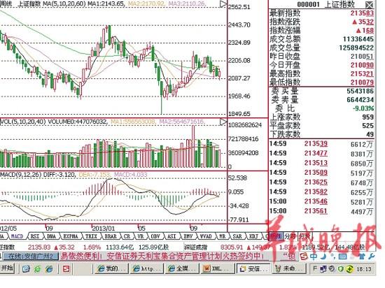 从日线图上看,大盘上周振荡下跌到帝纳波利重要点位F5=2082点后强力拉升,MACD趋势指标已经金叉。大盘本周如果能够接连突破压力点位F3=2152点和F5=2197点,它有可能创出新高,启动一波大幅上升行情。但是,如果在这两个点位掉头直线下跌,它则可能跌破目前的日线支撑点位F5=2082点,跌到更低的帝纳波利支撑点位黄金汇聚XOP=2048/F5=2057点或F5=2010点。