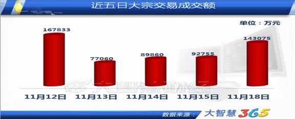 11月18日的大宗交易折溢价率排名前5中,成交金额位居第二的中南传媒,大宗交易明细显示,它的买方为银河证券娄底月塘街营业部和银河证券青岛广西路营业部,这两家营业部在大宗交易平台上常常同时出现。卖方为宏源证券长沙韶山北路营业部。中南传媒市场化业务布局初显效果,预期将带动传统业务的数字化切换,同时还有进一步向市场化属性强的相关传媒领域扩展的可能。这给公司未来的业绩增长带来了想象空间。