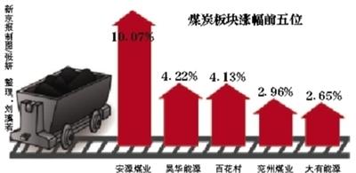 昨日早盘沪深两市双双高开,开盘后煤炭受利好刺激表现抢眼,其中安源煤业开盘一字涨停,包括靖远煤电、云煤能源、开滦股份等8股涨超3%,整个煤炭板块涨幅一度达到2.12%。