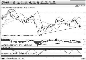 趋势上,主力波段指标的卖出信号保持了三周之久,上证指数近期处于其中线下方位置运行。多空线(DKX)继续下行,趋势线(QSX)走平,上证指数处于趋势线和多空线下方。
