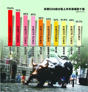 今年上半年标普500指数中表现最好的是公用事业板块,其次是能源板块,其中油气设备及服务板块累计上涨28%,油气储存和运输板块上涨25%,油气勘探板块上涨22%。在涨幅前十名的标普500成分股企业中,有3家是油气公司。